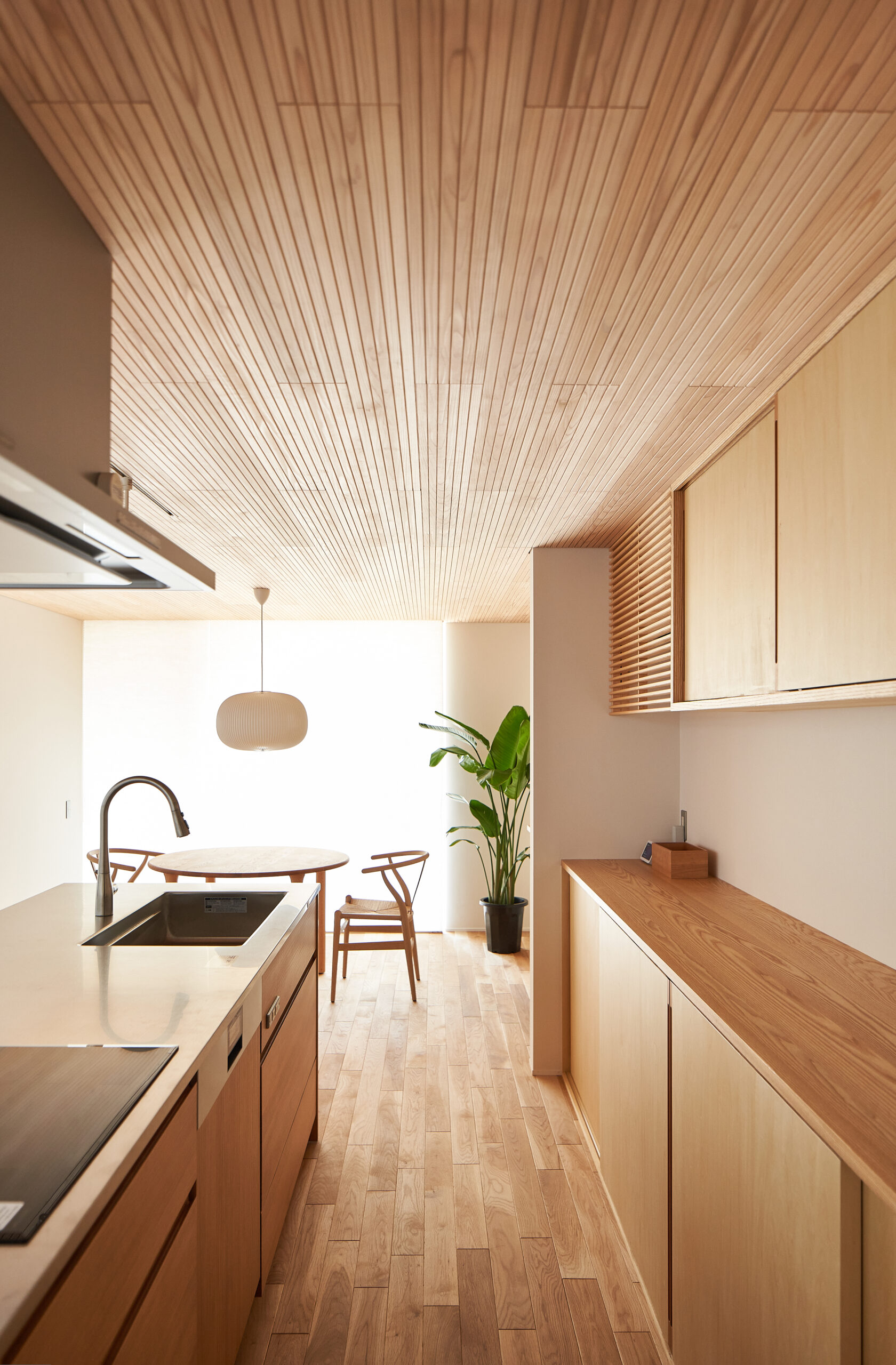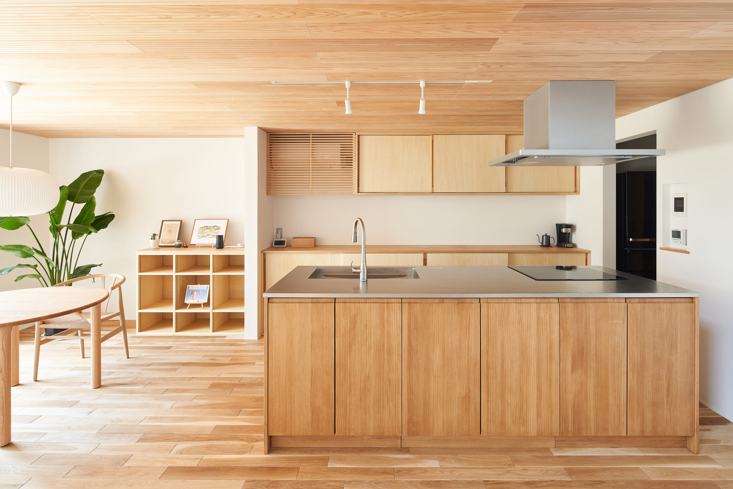 冷暖房/寒冷地エアコン2.2kw 各1台(自然対流+局所ダクト方式)/第一種全熱式換気/無垢の木のキッチンsu;iji/GAGGENAU製食洗器