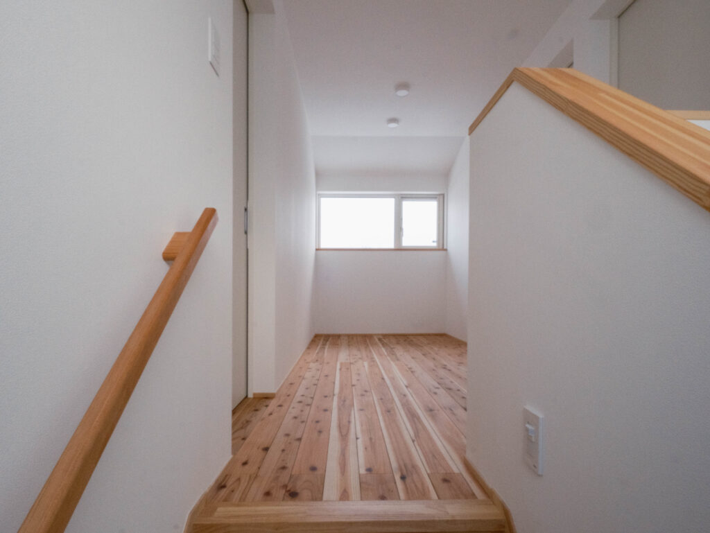 外壁は、住宅街の中でひときわ輝く秋田杉の板張り無塗装仕上げ。凛とした木の存在感が街並みに静かに立ち上がり、時間とともに表情を深めていく素材が、この家の“らしさ”をつくっていく。