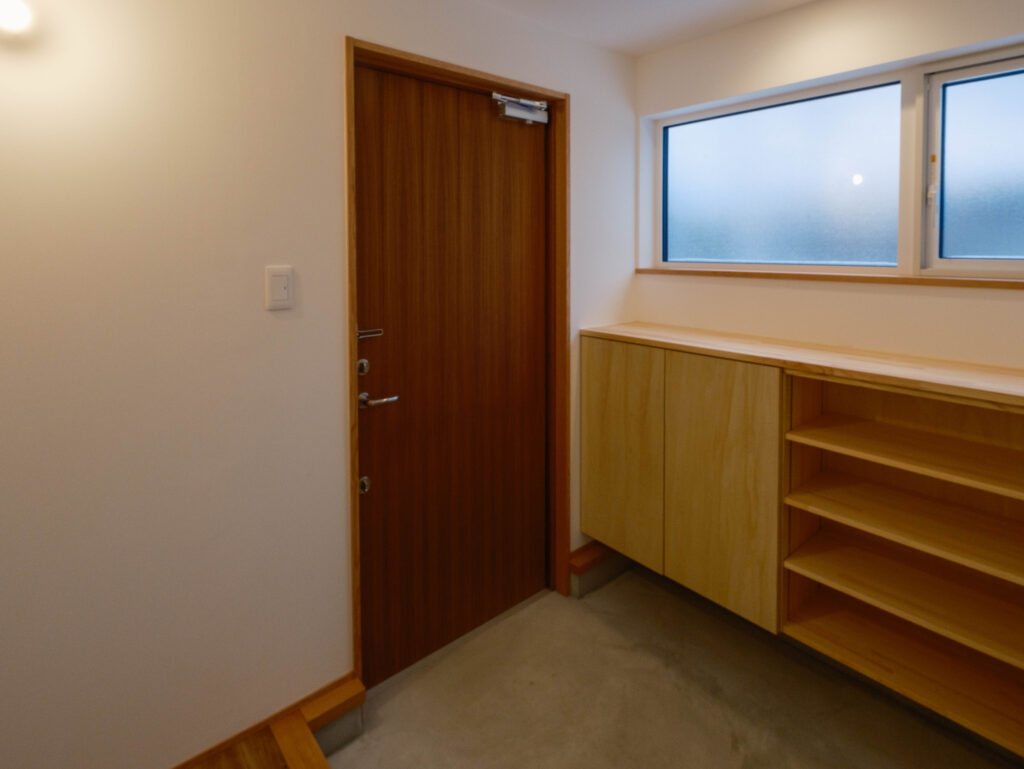 ご夫婦の中には、はじめから明確な“希望の間取り”があった。日々の動きが整う動線計画に加え、冬の陽射しをしっかり取り込む日射取得にもこだわり、窓の位置や大きさ、日射の入り方を丁寧に検討。光と熱を味方につけ、季節の移ろいを心地よさへ変えていく設計が、暮らしの骨格になっている。