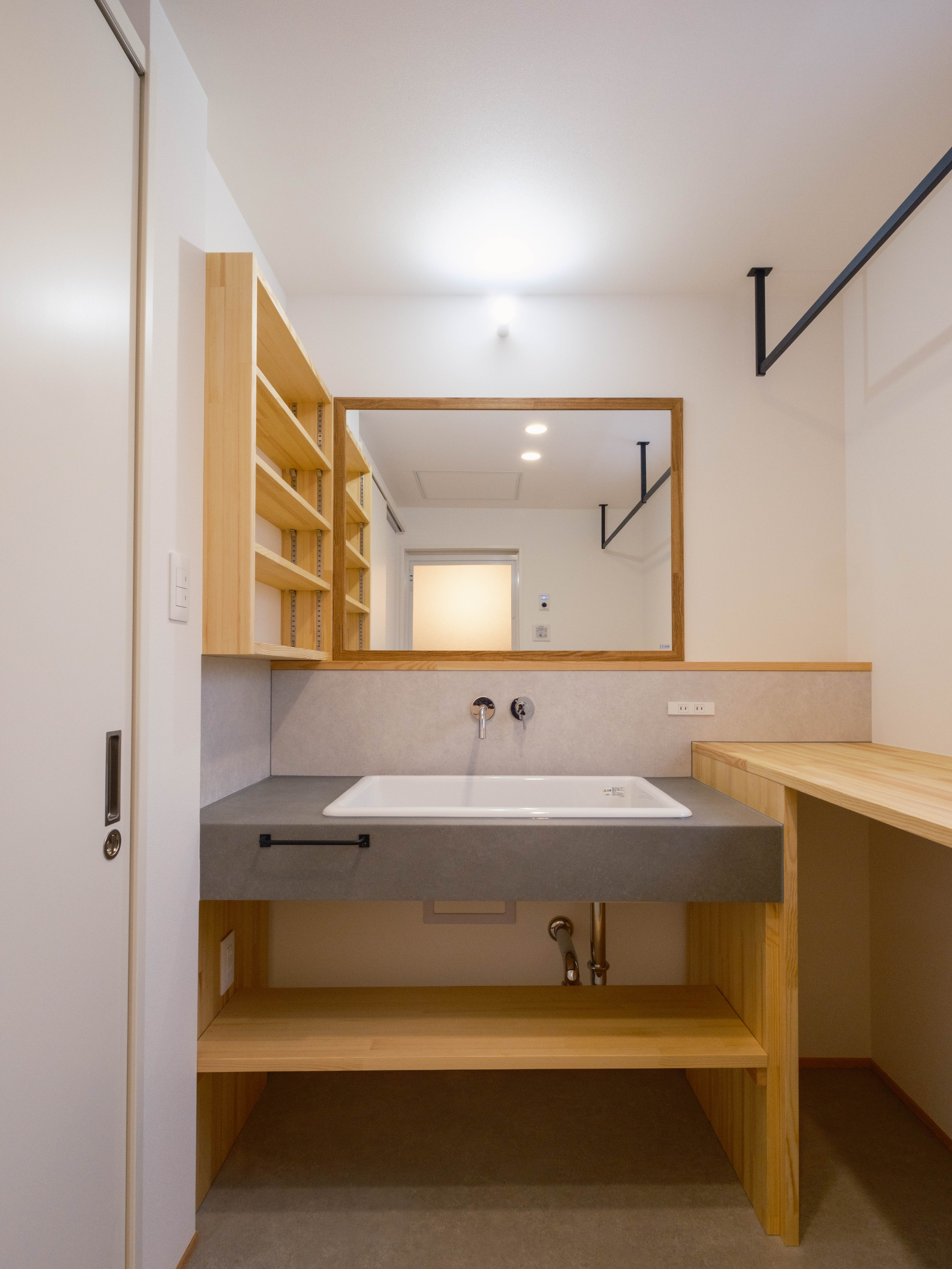 外壁は、住宅街の中でひときわ輝く秋田杉の板張り無塗装仕上げ。凛とした木の存在感が街並みに静かに立ち上がり、時間とともに表情を深めていく素材が、この家の“らしさ”をつくっていく。