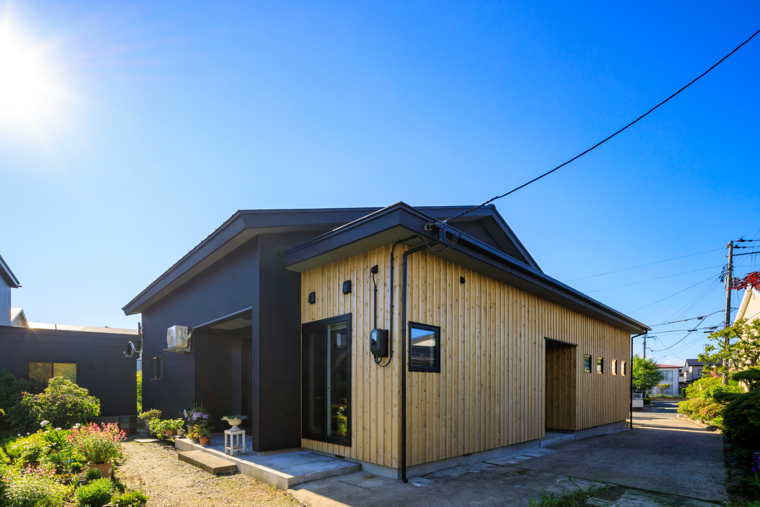 壁/金属製サイディング/秋田杉板縦張り無塗装仕上げ